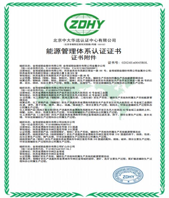 “能源管理体系认证”证书